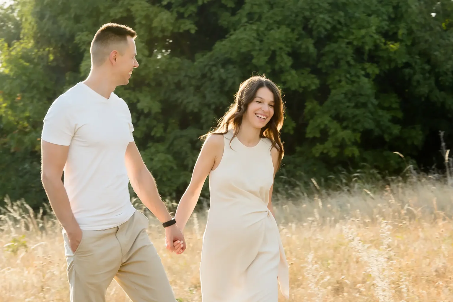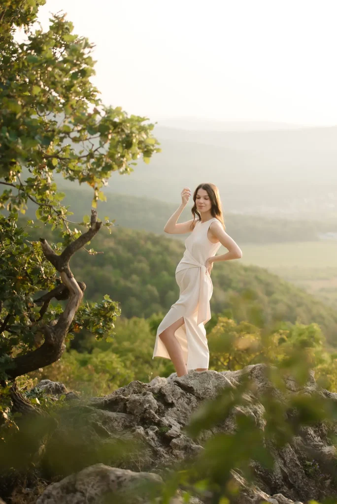 Ha egy kismamafotózás a természetben készül, akkor a legideálisabb, ha naplemente környékére tervezzük, hogy a meleg tónusú színek, még érzelmesebbé tegyék a babaváró képeik hangulatát.